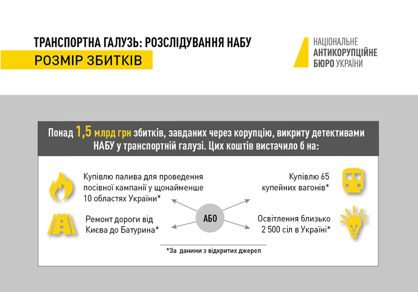 НАБУ оценивает ущерб от коррупции в транспортной сфере в 1,5 млрд грн