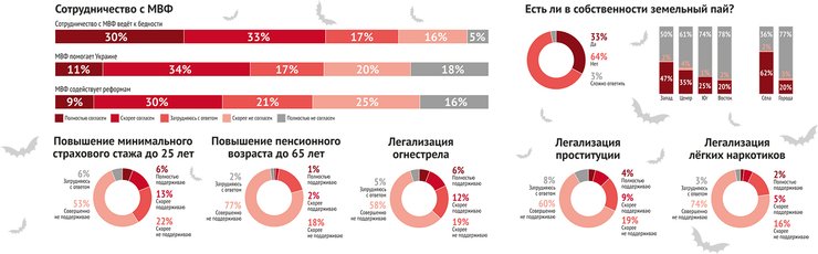 Как бы украинская власть ни преподносила транши МВФ в качестве "манны небесной", 63% опрошенных считают, что сотрудничество с фондом ведет к снижению соцстандартов и повышению цен. А 53% респондентов согласны с тем, что страны, которые сотрудничают с МВФ, преимущественно больше теряют, чем приобретают. Столь пессимистическое восприятие украинцами сотрудничества с МВФ можно объяснить негативным опытом некоторых стран, которые сотрудничали с фондом ранее. Так, вмешательство МВФ в экономику Греции и Испании лишь усугубило кризис в этих странах. Советы, которые МВФ дает государствам, преимущественно базируются на рецептах экономического процветания США. Большой вопрос — будут ли они работать в других странах.