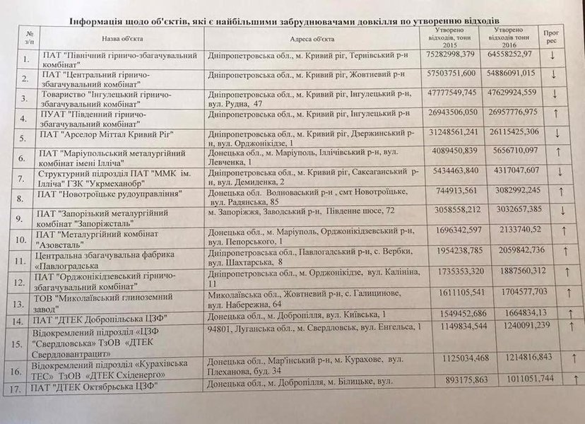 Министерство экологии и природных ресурсов обнародовало рейтинг предприятий, которые сильнее всего загрязняют окружающую среду в Украине. Об этом сообщил глава ведомства Остап Семерак в Facebook.