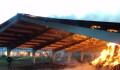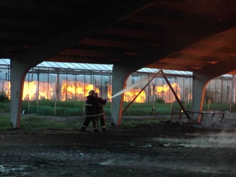 Прибыв на место происшествия, пожарные установили, что горят рулоны льна и конопли, которые хранились внутри помещения, а также кровля склада.