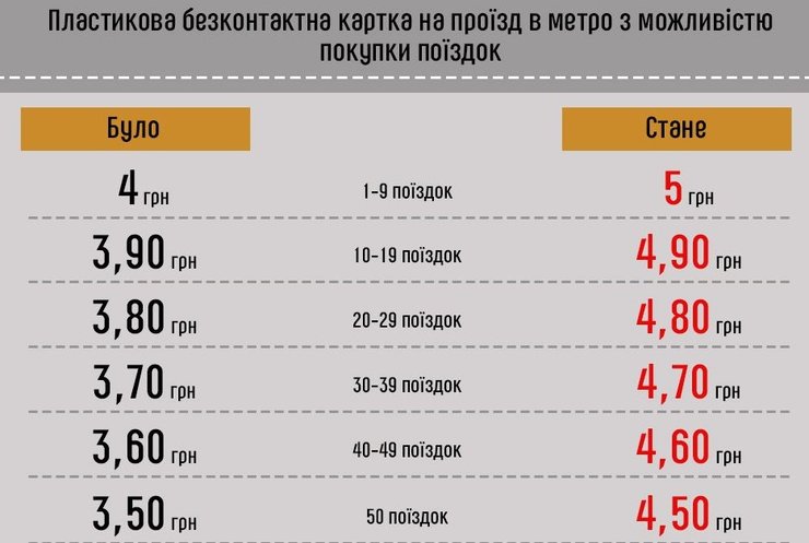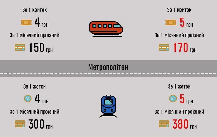 Поездка в метро будет стоить 5 грн, в наземном транспорте – 4 грн