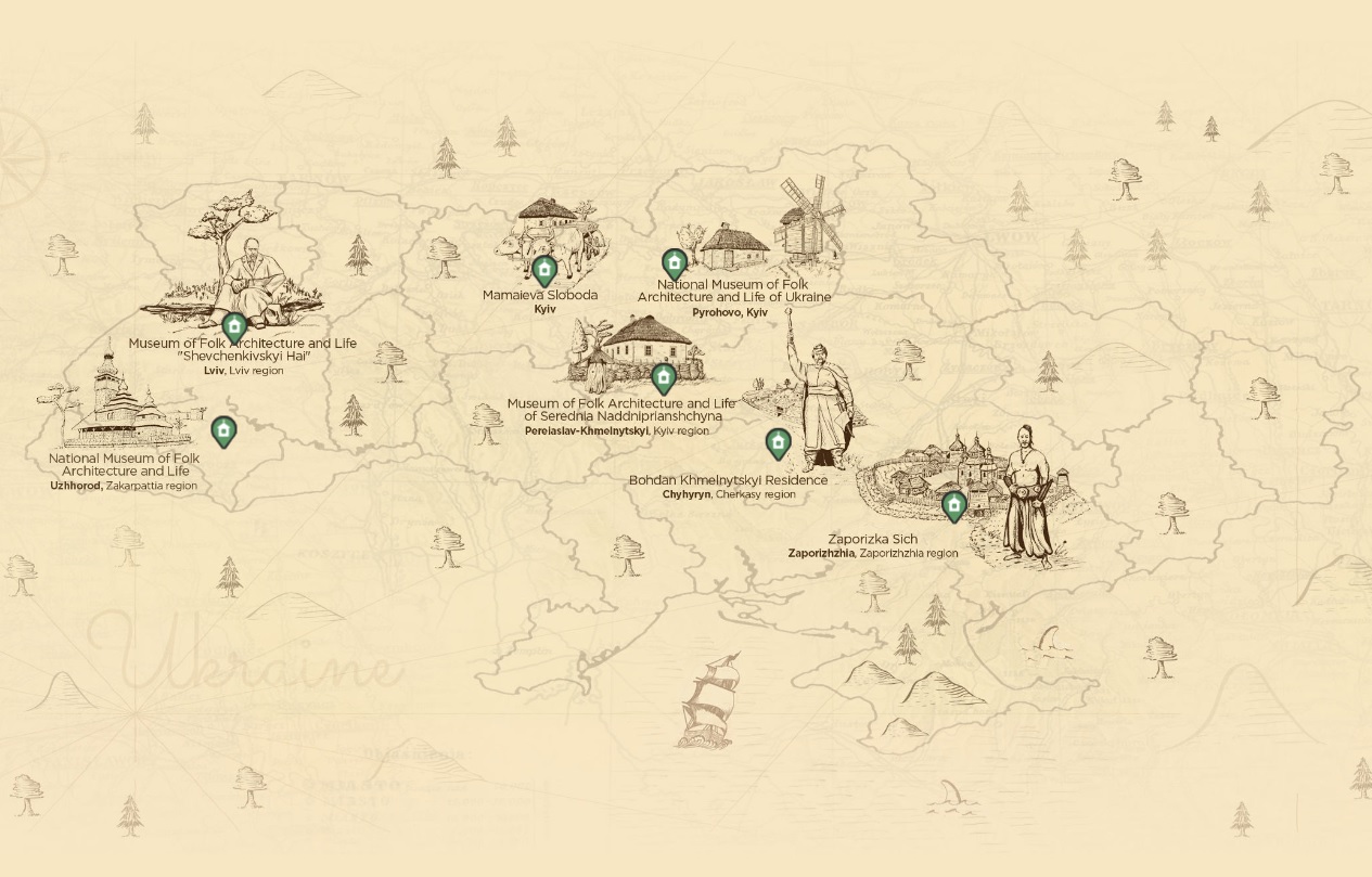 Проект является частью кампании "Аутентичная Украина" и состоит из музеев народной архитектуры и быта в Киеве (Пирогово), Львове ("Шевченковский гай"), Переяславе-Хмельницком и Ужгороде, а также из Центра народоведения "Мамаева Слобода" (Киев), заповедника "Хортица" (Запорожье) и резиденции Богдана Хмельницкого в Чигирине.