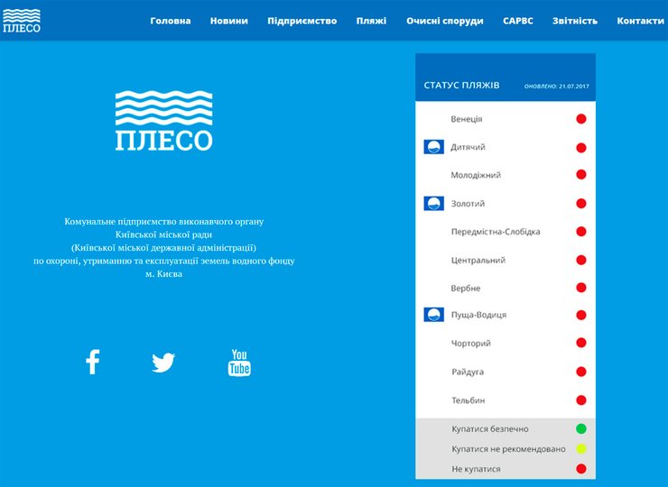 По состоянию на 21 июля купание запрещено на пляжах: "Венеция", "Детский", "Золотой", "Предмостная Слободка", "Молодежный", "Пуща-Водица", "Чорторый", "Вербный", "Радужный", "Тельбин" и "Центральный".