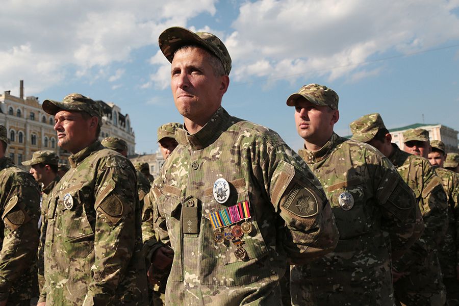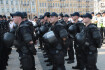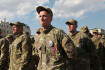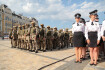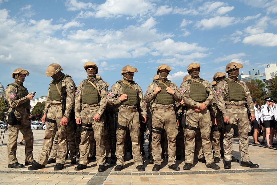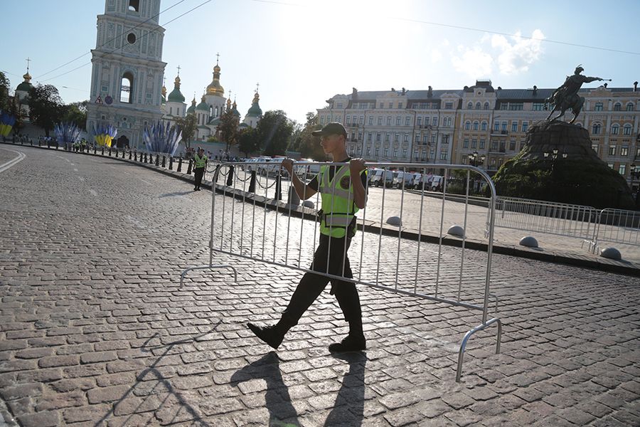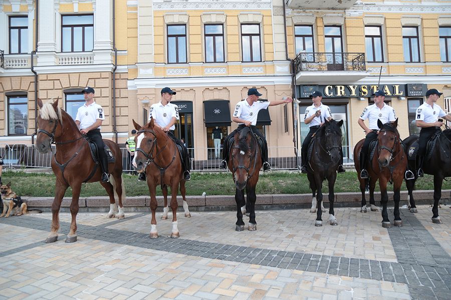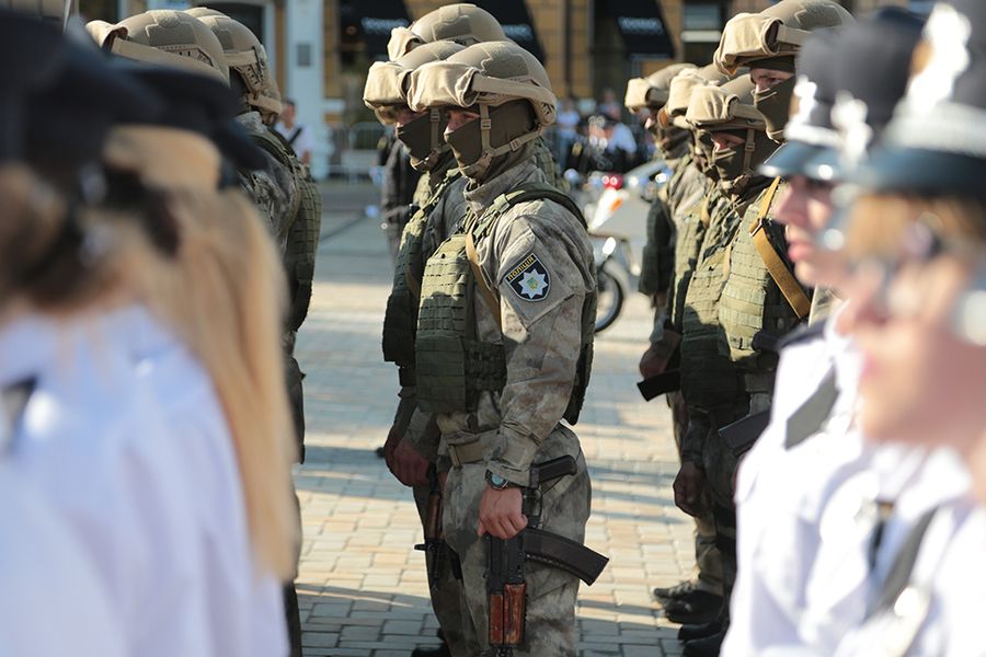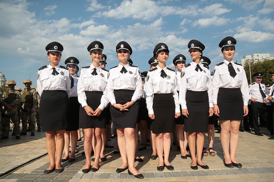 "Мы здесь с 9 утра", - говорит корреспонденту Фокуса один из патрульных и незаметно бросает взгляд на подразделение барабанщиц. Девушки все как один стоят по стойке смирно и крайне натянуто улыбаются. На них ярко синие пиджаки, туго натянутые на талии широкие атласные ремни, белые юбки и такие же белоснежные зимние ботинки. Понимая намек своего собеседника, подхожу к одной из них и пытаюсь узнать, каково стоять в таком наряде в такую жару. "Бывает хуже, а в целом все хорошо, и вообще, это не главное. Сегодня ведь наш праздник", - с улыбкой отвечает барабанщица Оля. Она и ее коллеги из мариупольского подразделения полицейских барабанщиц специально приехали в Киев, чтобы выступить на торжественных мероприятиях.
