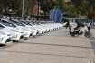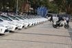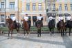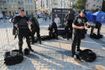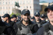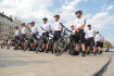 Его выступление под палящим солнцем, помимо нескольких сотен патрульных полицейских, внимательно слушают еще десяток кинологов с собаками, примерно столько же представителей конной полиции и более 20 велопатрульных. На самой площади в три ряда стоит почти полсотни полицейских автомобилей, машина КОРДа и три машины взрывотехнической службы.