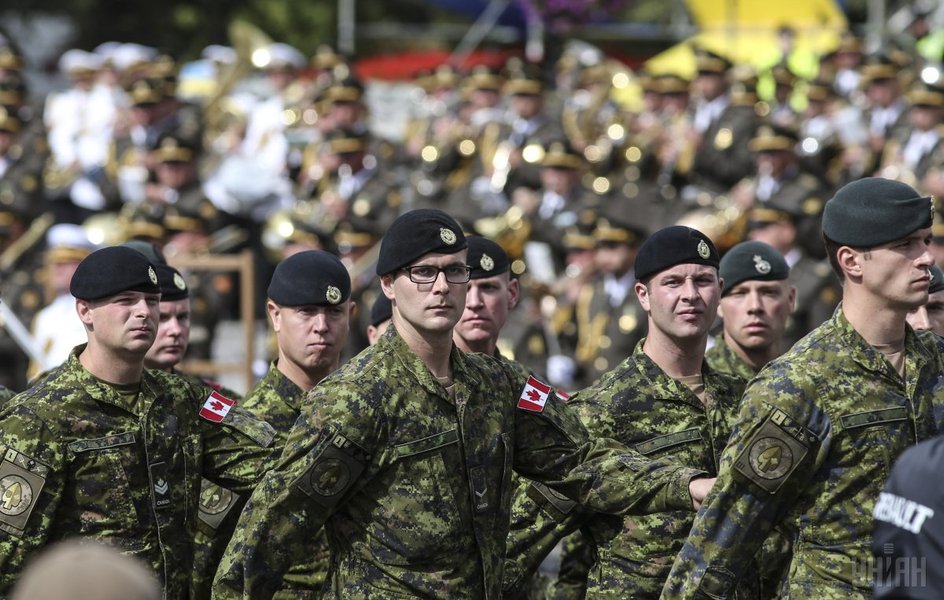 Вместе с ними по главной улице столицы прошли военнослужащие армий стран-партнеров Украины: Канады, Эстонии, Грузии, Великобритании, Латвии, Литвы, Молдовы, Польши, Румынии и США.