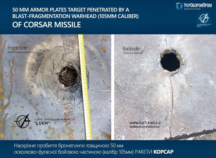 Принятию на вооружение нового ракетного комплекса предшествовал целый комплекс испытаний. Также досрочно были изготовлены и поставлены в ВСУ более 50 ракет к "Корсару".