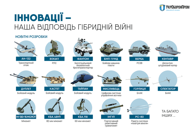 За последние три года Укроборонпром создал десятки новейших образцов вооружения, которые являются достойным ответом Украины на вызовы гибридной войны. Об этом сообщает пресс-служба концерна.