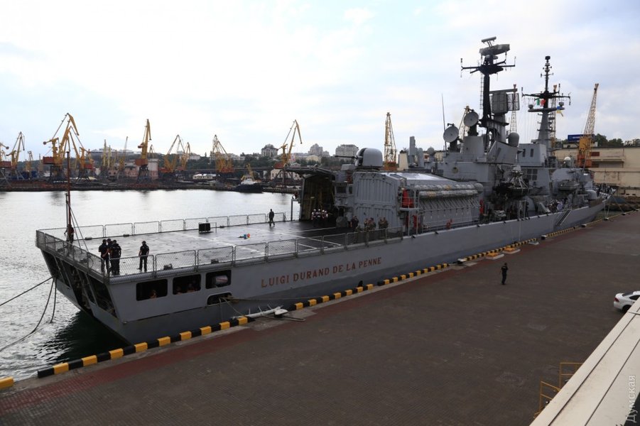 В понедельник у причала морвокзала Одесского морского порта бросил якорь эсминец Luigi Durand de la Penne ВМС Италии.