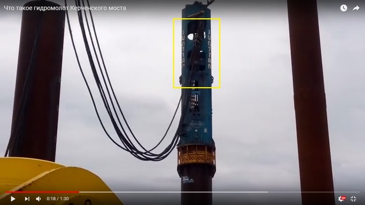 На видео зафиксировано, что гидромолот производства JUNTTAN в процессе работы в Керченском проливе использует фирма КТФ "Мостоотряд-125", являющаяся филиалом ПАО МОСТОТРЕСТ.