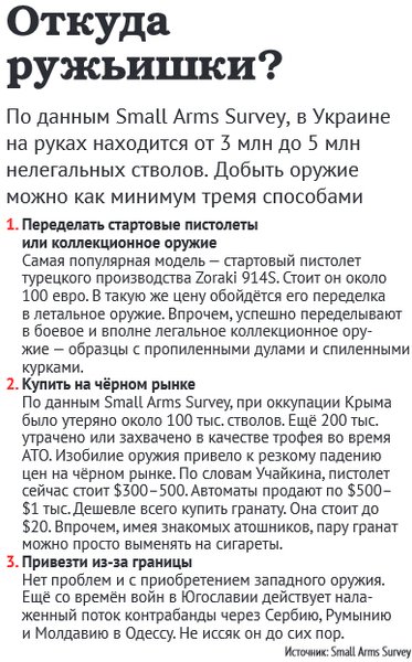 Здравые аргументы можно найти в позициях как сторонников, так и противников легализации короткоствола. Но главная проблема в другом — как отмечается в отчете международной организации Small Arms Survey, в Украине нет прозрачного законодательства, которое бы регулировало производство и приобретение оружия, а также владение им.