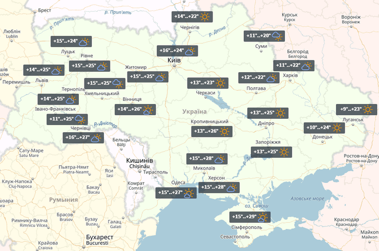 В Луцке в субботу ночью +15°, днем +24°, без осадков. В воскресенье ночью +15°, днем +26°, переменная облачность.