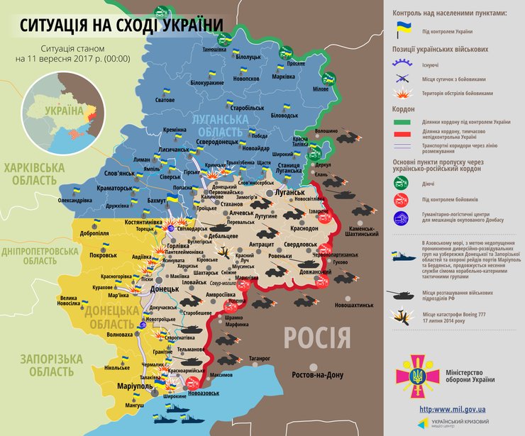 Карта военных действий в зоне АТО на 11 сентября
