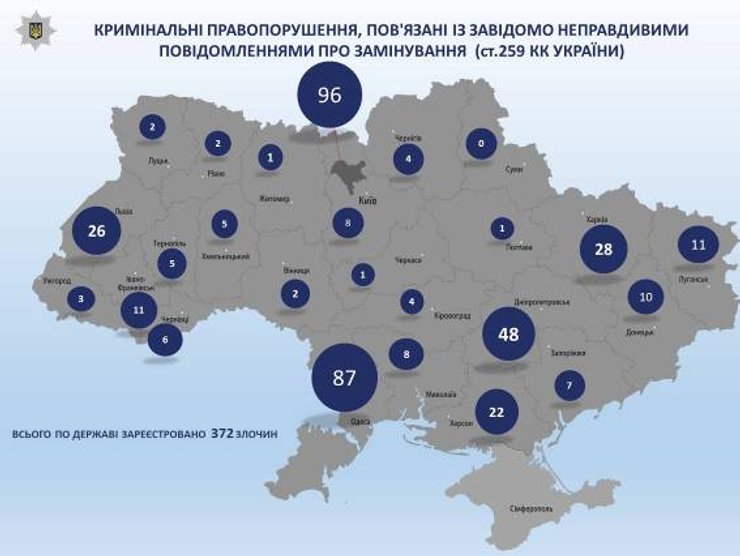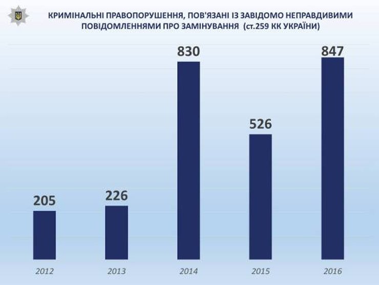 С начала 2017 полицией уже направлено в суд 57 дел этой категории преступлений, а в 183 случаях уголовные производства завершены. В то же время, злоумышленникам сообщено о подозрении в 16% зарегистрированных правонарушений о "минировании".