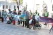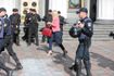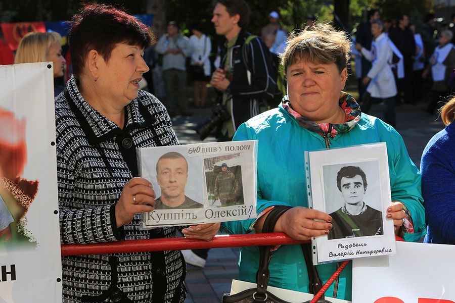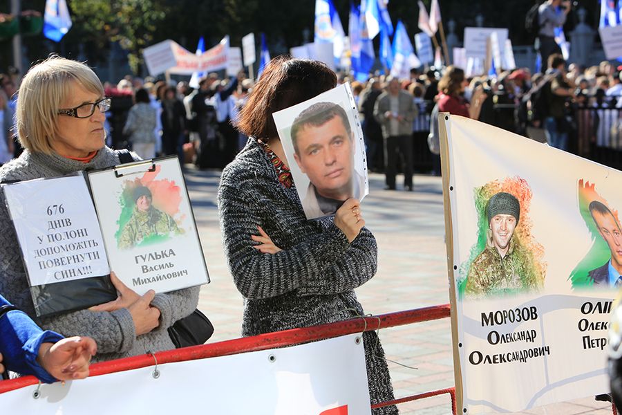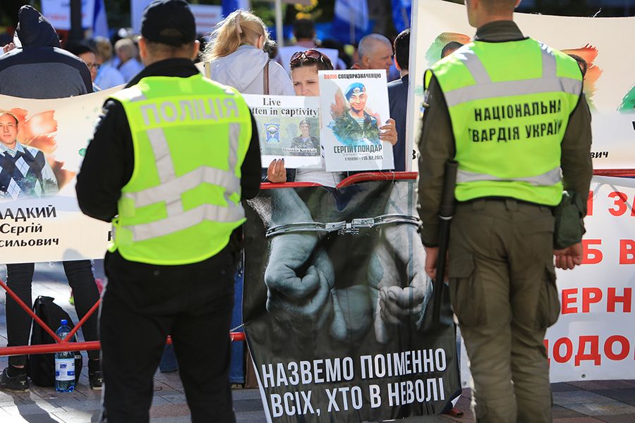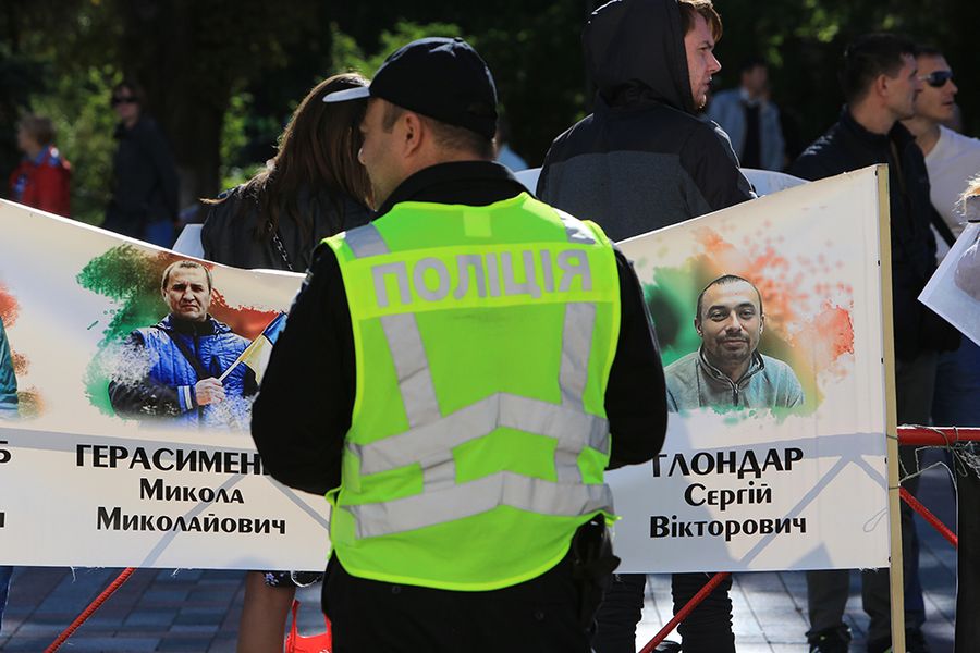 Вскоре колонна движется туда, где на самом деле находятся депутаты, к окруженному полицией зданию Верховной Рады. Располагается напротив нее, на площади Конституции. Туда с утра пришли немногочисленные родственники украинских политузников, незаконно задержанных и осужденных российскими властями. Их акция сразу же растворяется в более масштабной и организованной акции против медреформы. Звучат песни о нелегкой судьбе медработников и утверждения о том, что "профессия врача – вторая после Бога".