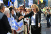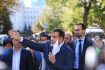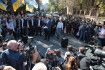 Многих участников акции под НБУ ближе к полудню привлекло другое мероприятие, в полусотне метров от них, на углу Институтской и Банковой. Там в окружении немногочисленных соратников появился экс-президент Грузии Михеил Саакашвили, который ранее обещал приехать в Киев только после тура по всем регионам Украины.