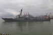 Корабль должен был прибыть вчера, но из-за шторма на борт эсминца не мог попасть лоцман, поэтому заход решили отложить.