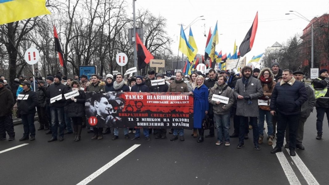 В центре Киева проходит марш сторонников экс-президента Грузии Михеила Саакашвили с требованием импичмента президенту Украины Петра Порошенко. Об этом сообщает Громадське Радіо.