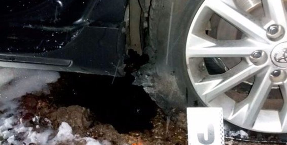"По предварительным данным, под задним колесом машины Toyota находился боеприпас неизвестного происхождения. Когда автомобиль тронулся, прогремел взрыв. 35-летнего водителя с незначительными телесными повреждениями доставили в больницу для оказания медицинской помощи", - говорится в сообщении.