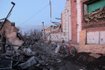 Причудливо изуродованные дома, разваленные стены, пробитые крыши, порванные куски виноградных лоз, исковерканные ворота, вырванные углы домов, открывающие не детали обстановки, а опять-таки груды битого кирпича и куски перекрытий. Из груды обломков торчит ярко-красный пластмассовый таз, точнее, его обрывок — видимо, осколок порвал.