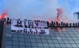 Представители Нацкорпуса повесили на стенах ТЦ "Глобус" огромный плакат с надписью "Мишу в Грузию, Петю в Гагаузию". Однако на них участники акции, собравшиеся на площади возле Стеллы, не обратили особого внимания, назвав их провокаторами.