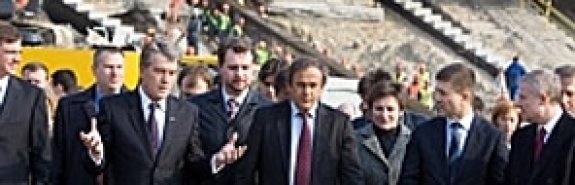 Как сообщает пресс-служба главы украинского государства, на стадионе Ющенко обменялся с Платини мнениями по поводу подготовки и проведения в Украине финальной части чемпионата Европы 2012 года.