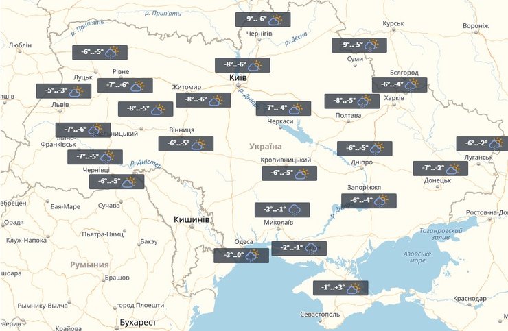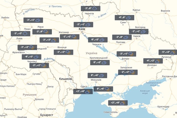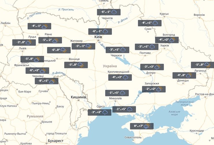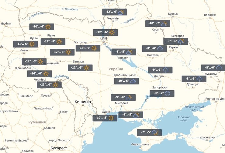 В понедельник в Украине местами пройдет снег. На западе до -14°, в центре и на юге до -10°. На востоке столбик термометра опустится до -8°, на севере до -12°, пишет УНИАН.