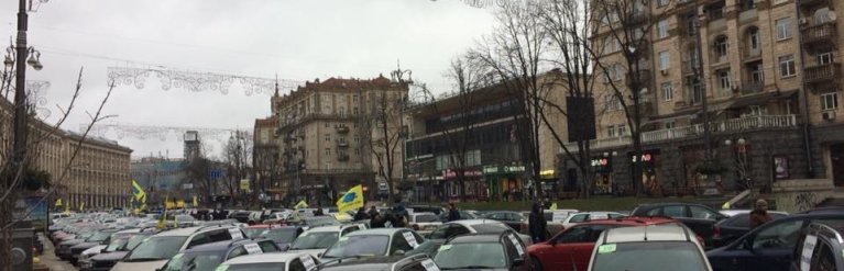 Автомобилисты проводят свою акцию в один день с запланированным маршем партии "Рух новых сил" за отставку президента Петра Порошенко.