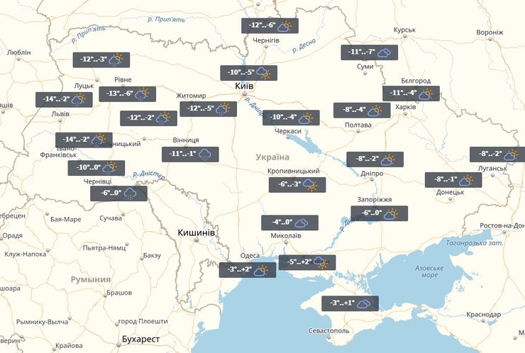 Во вторник, 6 февраля, в Украине практически без осадков. На западе до -14°.