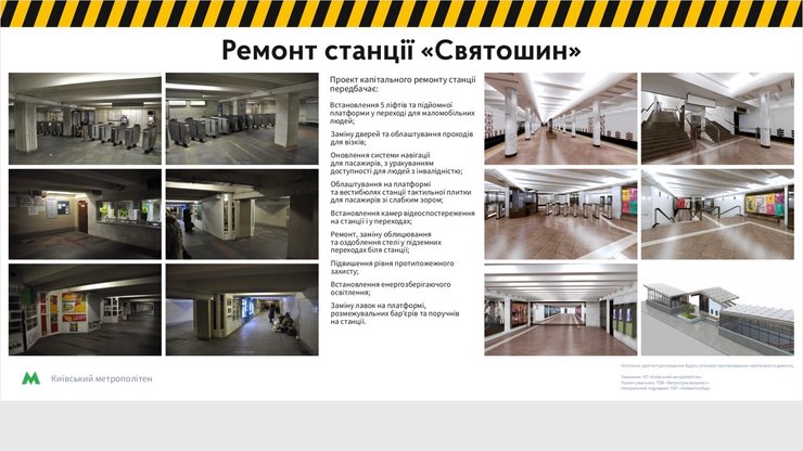 "С 24 февраля 2018 года (суббота) будет начат капитальный ремонт станции "Святошин". Выходы к проспекту Победы, заводу "АТЕК", Антонова, а также подземный переход не будут работать. В часы "пик" для избежания скопления людей возможно частичное ограничение входа в рабочий вестибюль (выход к железнодорожной станции, проспекта Победы и вещевого рынка)", – говорится в сообщении.