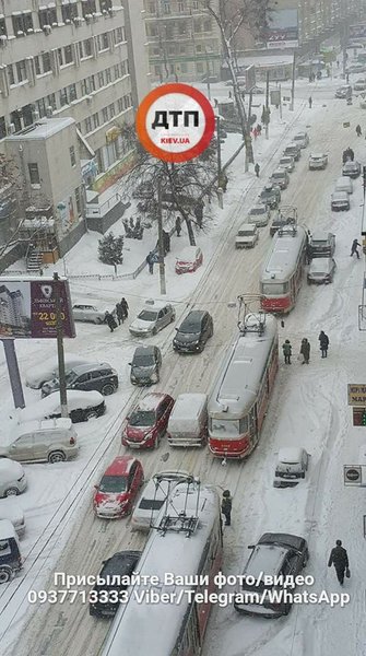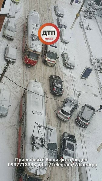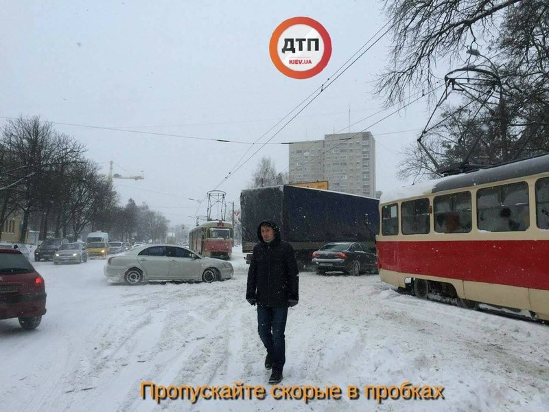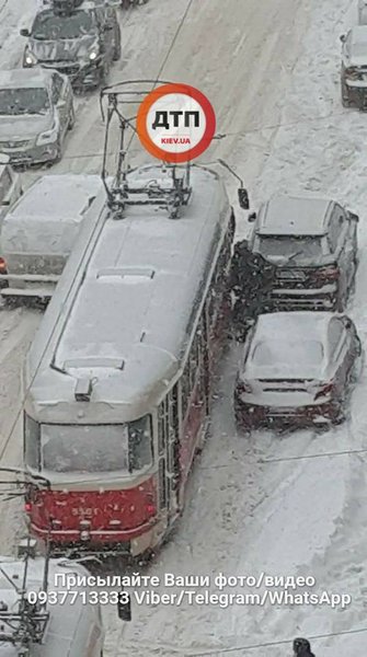 Так, в результате столкновения легковушки и грузовика на перекрестке ул.Дегтяревской и вул. Семьи Сосниных остановилось движение трамваев №№14, 15, сообщает dtp.kiev.ua в Facebook.