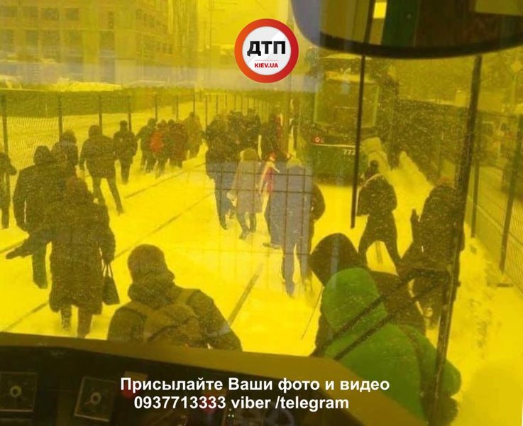 Также по неизвестным причинам остановился транспорт на Борщаговской линии скоростного трамвая. Пассажиры были вынуждены идти пешком.