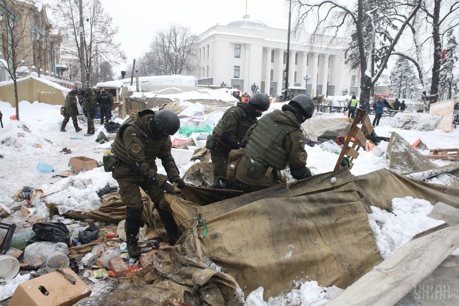 В полиции все происходящее объяснили следственными действиями в рамках уголовных производств по факту попытки захвата Октябрьского дворца и по событиям 27 февраля под Верховной Радой. Мол, о проведении мероприятий жителям лагеря было сообщено заранее, но они оказали сопротивление.