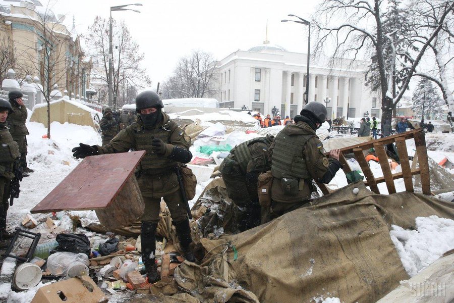 После разгона и задержаний правоохранители приступили к следственным действиям. Полиция оцепила палатки в Мариинском парке, расположенные рядом со зданием Министерства здравоохранения Украины, и выставила кордон между зданием Кабмина и парламента.