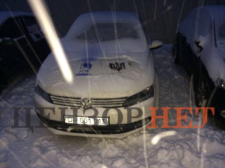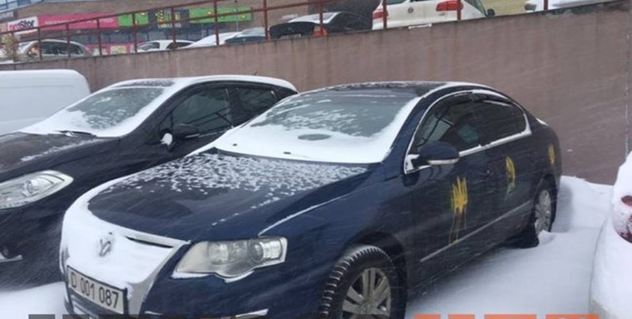 Автомобили российских дипломатов в Киеве разрисовали тризубами