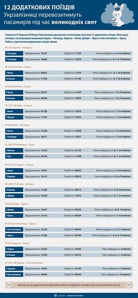 Укрзализныця запустит на период пасхальных праздников 12 дополнительных поездов. Об этом сообщил и.о. главы правления компании Евгений Кравцов в Facebook.