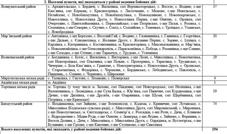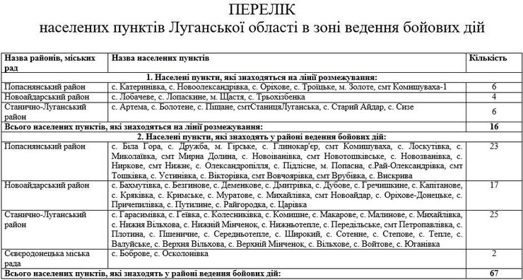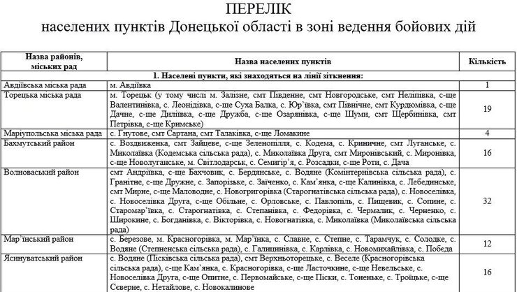 Опубликован новый перечень населенных пунктов Донецкой и Луганской областей, входящих в зону боевых действий. Перемены связаны с новым правилам из-за начала проведения операции объединенных сил.