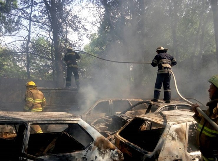 В Киеве - пожар на штрафплощадке, сгорели более 50 машин