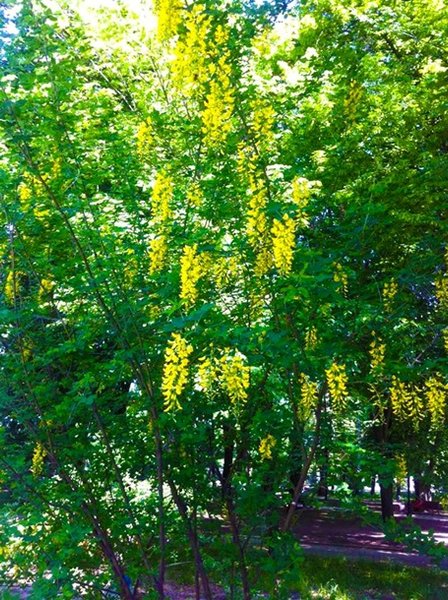Кроме того, коммунальщики показали листопадное дерево Бобовник. Его родина - Центральная Европа и Средиземноморье.