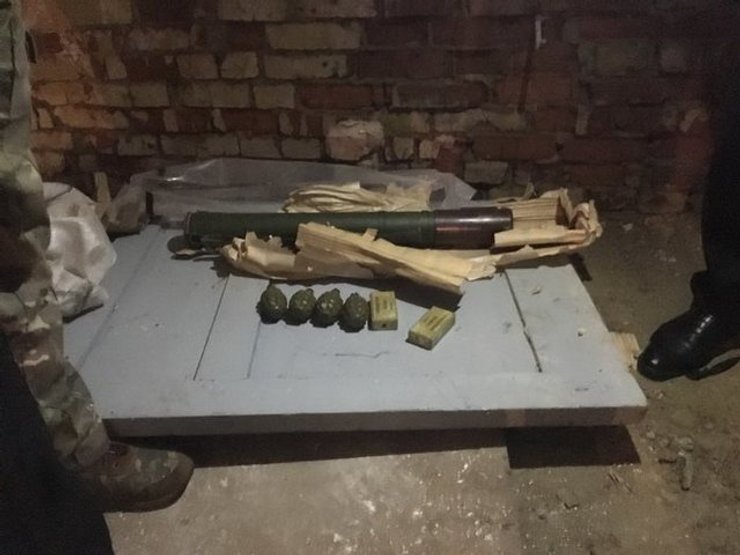 Во время обыска в подсобке сотрудники СБУ изъяли гранатомет РПГ–22, четыре гранаты Ф-1 и две тротиловые шашки.