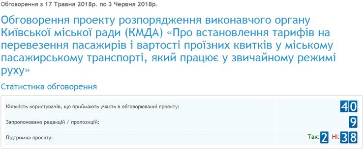 17 мая на Едином веб-портале территориальной общины города Киева началось общественное обсуждение проекта распоряжения КГГА о повышении стоимости проезда в коммунальном транспорте. Об этом сообщает пресс-служба горадминистрации.
