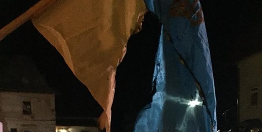 Во Львовской области сожгли флаг Украины возле памятника жертвам репрессий