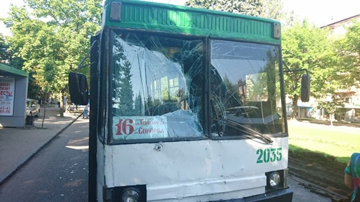 После удара автобус отбросило на несколько метров. По словам водителя троллейбуса, у транспорта отказали тормоза.