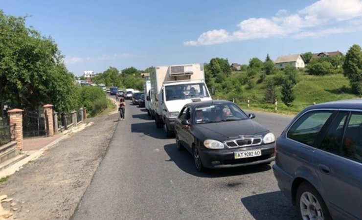 В направлении Буковеля образовалась многокилометровая пробка в обоих направлениях. В пробке стоят четыре автобуса с детьми. Правоохранители перекрыли дорогу за полтора километра до протестующих.