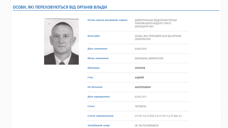 Мэр Доброполья (Донецкая область) Андрей Аксенов объявлен в розыск.
