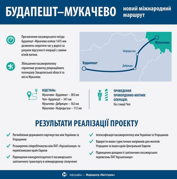 "К концу лета, за два месяца, по евроколее должны запустить обещанный поезд "Мукачево-Будапешт". Специально для этого, в 500 м от железнодорожного вокзала станции Мукачево, начинаем строить отдельную посадочную платформу. Она будет примыкать к колее стандарта 1435 мм", - написал он.