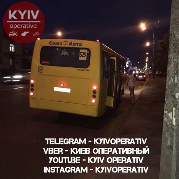 В Киеве во время движения у маршрутки №529 на перекрестке Харьковского шоссе и улицы Вербицкого отпали двери.