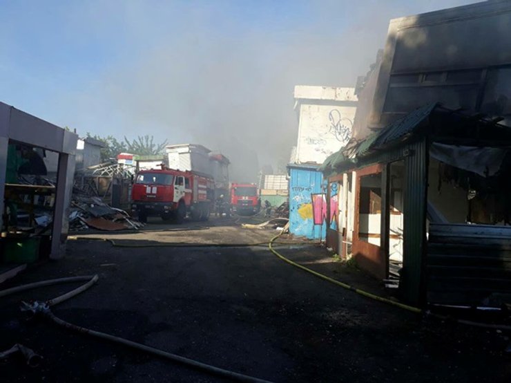 "Спасатели установили, что горят нефункционирующие киоски на площади 100 кв. м. Не теряя времени, пожарные сразу же приступили к тушению пожара. В 18:11 пожар на общей площади 200 кв. м спасатели локализовали, а в 18:47 – ликвидировали", – говорится в сообщении.