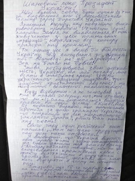 Украинский политзаключенный Владимир Балух, которого содержат в Крыму, написал письмо президенту Петру Порошенко.