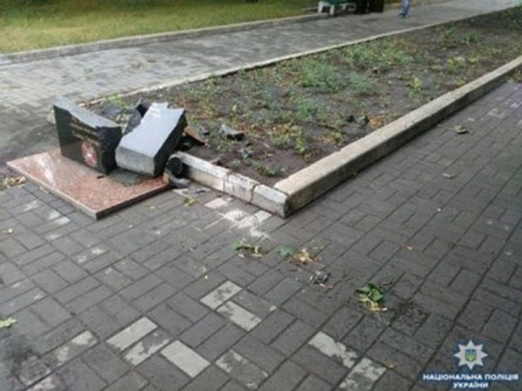 Так, 24 июня в местное отделение полиции поступило сообщение от местного жителя о том, что в городском парке на аллее памяти разбит памятник воину АТО.